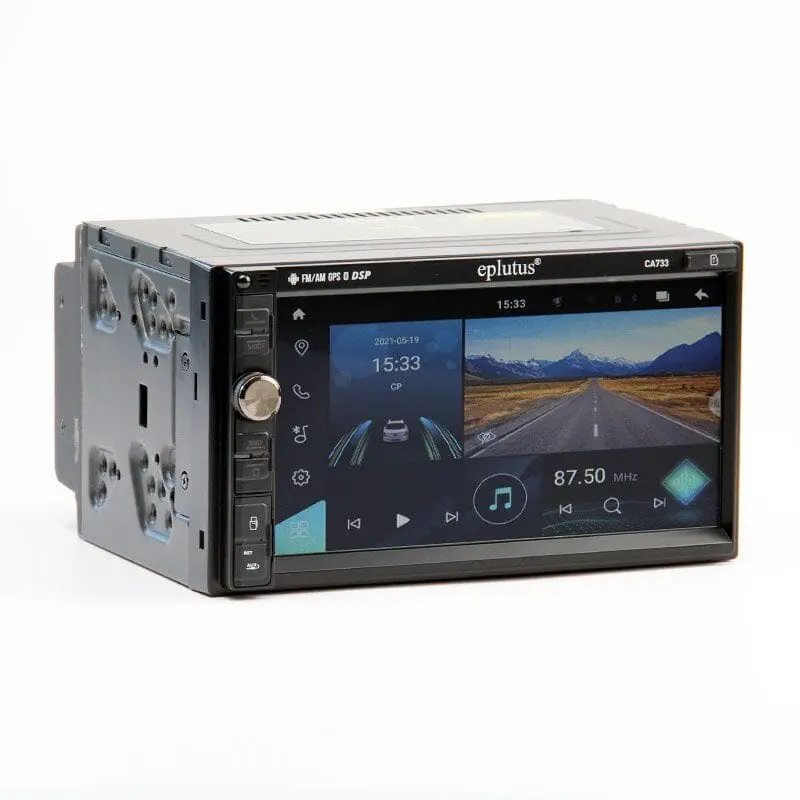 Компактная автомобильная магнитола Eplutus CA733 выполнена в конструктиве din 2 и представляет собой универсальное мультимедийное устройство. Она рассчитана на качественное воспроизведение аудио- и видеофайлов в различных форматах, работу с выносными видеокамерами и сопряжение с другими компьютеризированными гаджетами.