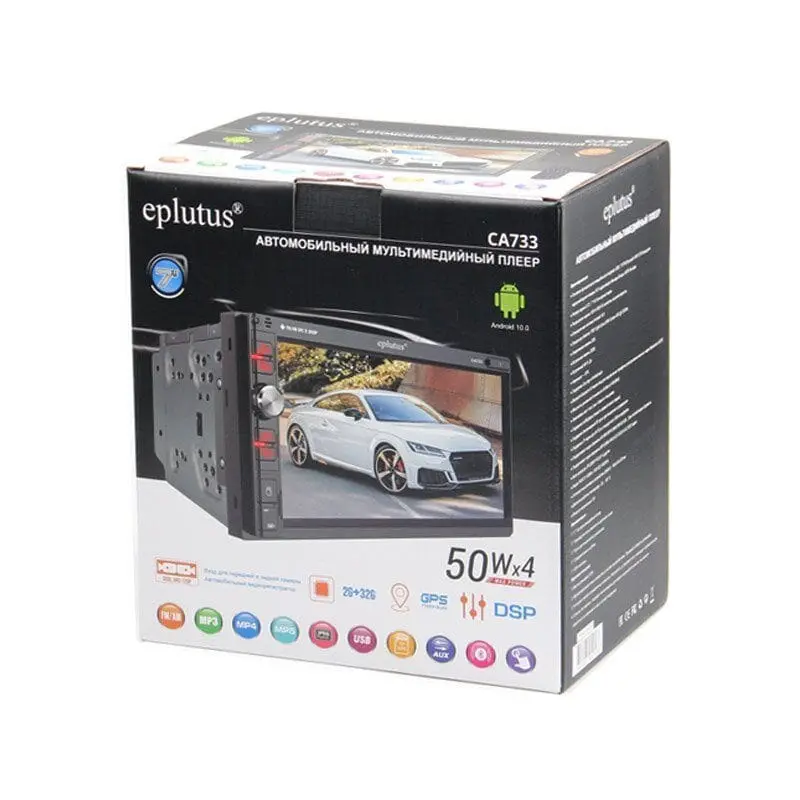 Связь c внешними устройствами Eplutus CA733 поддерживает посредством ОС Android 10.0 и Bluetooth v5.0. Звуковой усилитель 4-канальный с динамиками мощностью по 50Вт. Источник электропитания автомагнитолы - бортовая сеть автомобиля (12В постоянного тока). В штатный комплект входят пульт ДУ и выносная GPS антенна.
