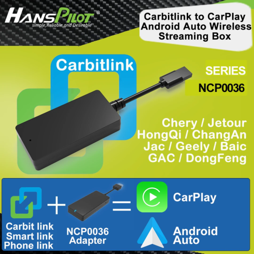 HansPilot NCP0036 — это устройство, которое обеспечивает поддержку протокола CarBitLink и позволяет использовать функции CarPlay и Android Auto на головных устройствах с операционной системой Android. Для работы не требуется установка сторонних приложений или проведение сложных модификаций (разлочки) головного устройства. Использование данного устройства не влияет на гарантию автомобиля.